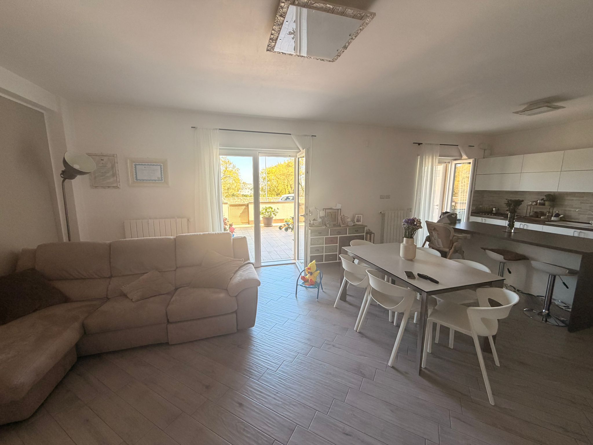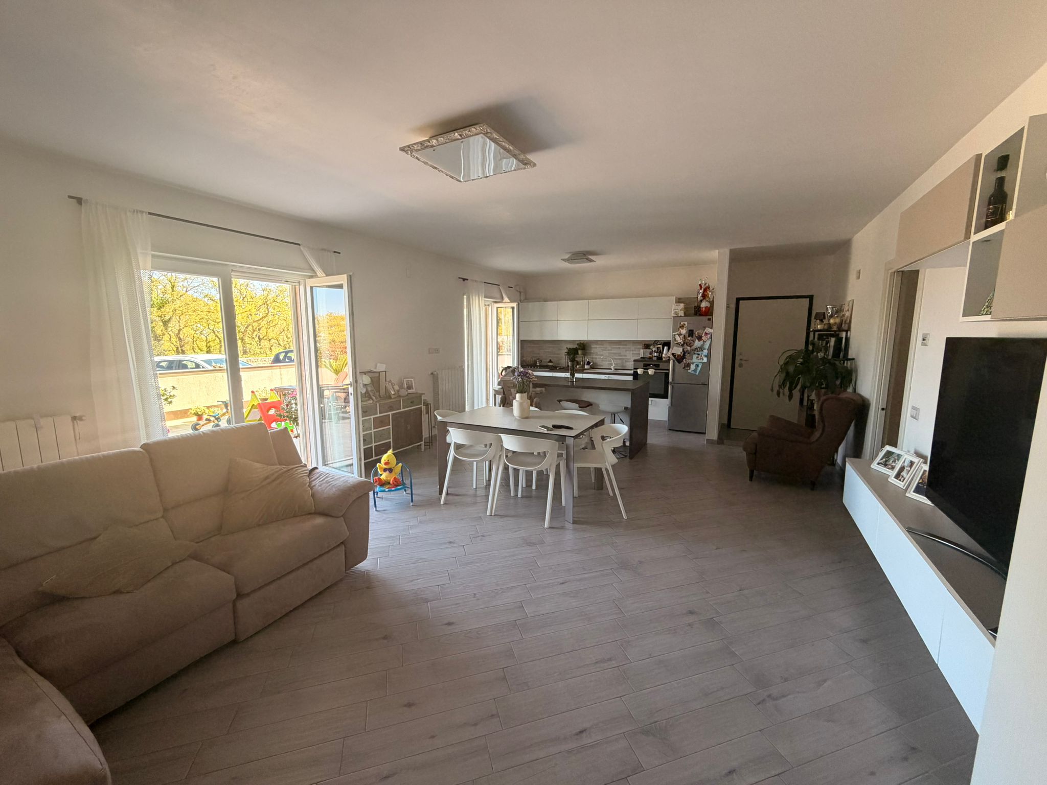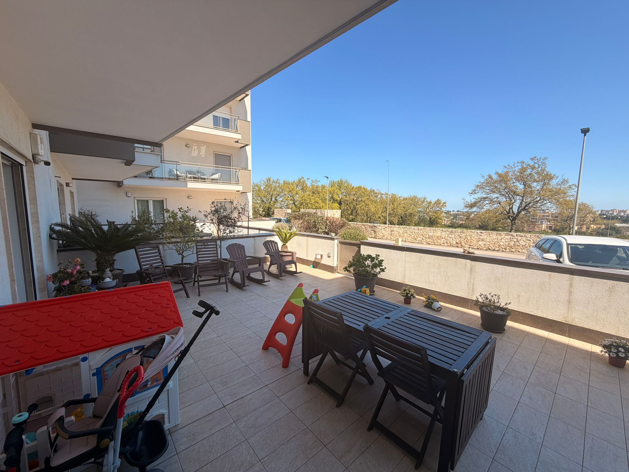 Proponiamo in vendita un elegante appartamento di circa 100 mq lordi, situato al piano terra di una palazzina di recente costruzione (circa 10 anni), ideale per chi cerca comfort, modernità e spazi esterni vivibili. L’appartamento di distingue per una zona giorno con openspace, composta da soggiorno e cucina, particolarmente luminosa e accogliente con vista panoramica su Martina Franca. La zona notte comprende due camere da letto ed entrambe hanno accesso a balcone di pertinenza con esposizione posteriore, completa il bagno grande con vasca. Punto forza dell’appartamento è la presenza di ampi spazi esterni, circa 15 mq di balcone e una veranda di pertinenza di circa 55 mq, perfetta per momenti di relax all’aperto, pranzi e cene in compagnia. E’ inoltre già presente l’autorizzazione condominiale per l’installazione di una veranda mobile, locale caldaia con predisposizione attacco lavatrice, lavandino e allaccio a pannelli solari. L’appartamento è dotato di riscaldamento termo autonomo, tapparelle elettriche, infissi blindati, doppio accesso sia da portone condominiale che da pratico ingresso indipendente tramite cancelletto in veranda. Completa la proprietà un posto auto assegnato, situato proprio fronte all’abitazione. Complesso residenziale completamente recintato con tanti posti auto liberi a disposizione. Soluzione ideale per le famiglie o per chi desidera vivere in un contesto tranquillo senza rinunciare alla comodità degli spazi esterni e alla funzionalità degli ambienti.
