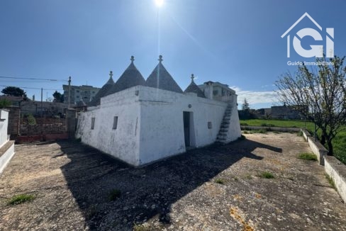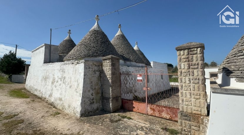 Proponiamo in vendita, prestigioso complesso di 6 trulli di fine settecento, distanti dal centro abitato circa 800 m. La proprietà si compone da doppio accesso con terreno di circa 4000 mq di pertinenza. La struttura presenta 6 coni in buonissime condizioni esterne ma completamente da ristrutturare al loro interno. Privi di impianto di riscaldamento e di vasca imhoff. L’immobile ha caratteristica categoria catastale A/11. Possibilità di accedere al terrazzo mediante scala esterna di pertinenza in pietra. Si compone da 6 grandi ambienti, ciascuno per ogni trullo, alti con 2 piccoli bagni e zona cucina con camino.
