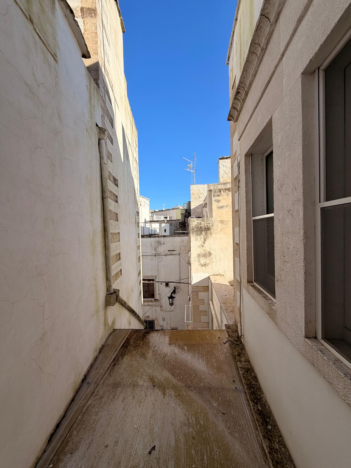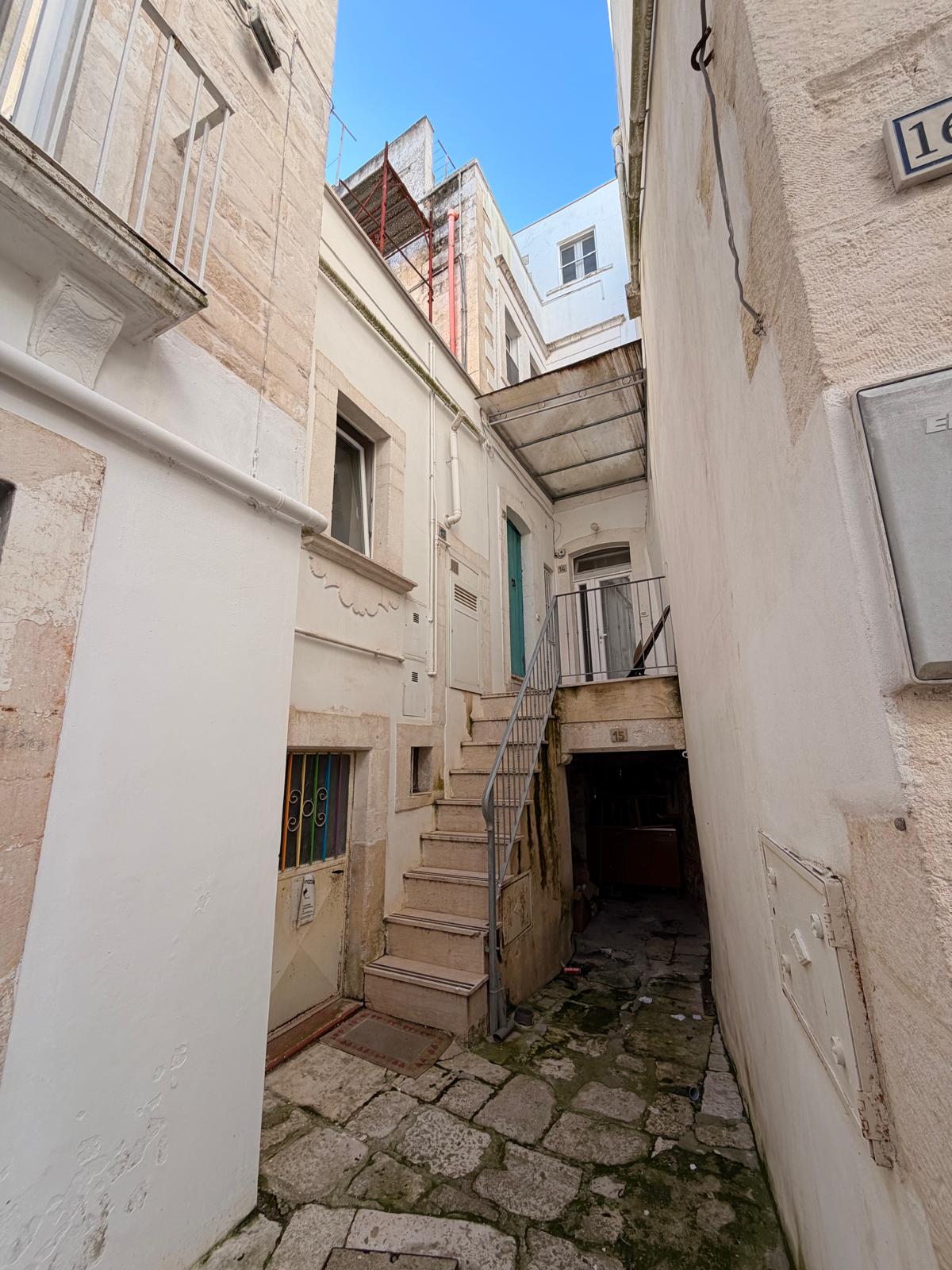 Proponiamo in vendita, nel centro storico di Martina Franca, nei pressi dell’extramurale (vicino Via Mercadante) abitazione di circa 80 mq dislocata su due livelli. L’abitazione indipendente è composta da un portoncino (civico 13) che porta ad un primo livello: disimpegno con finestra, accesso a camera molto grande e luminosa con volte a stella intonacata e finestra alla romana, bagno di servizio ubicato nel vano scala, scala che porta al secondo piano ove è presente altro bagno con piatto doccia e zona soffitta con accesso diretto a terrazzo con accesso esclusivo. Dal terrazzo vi è una suggestiva visione del centro storico di Martina Franca e non solo. L’abitazione è allacciata all’acquedotto, collegata al gas di città. Inoltre ha come pertinenza un locale deposito ubicato a piano terra (civico 11) di 19 mq circa.